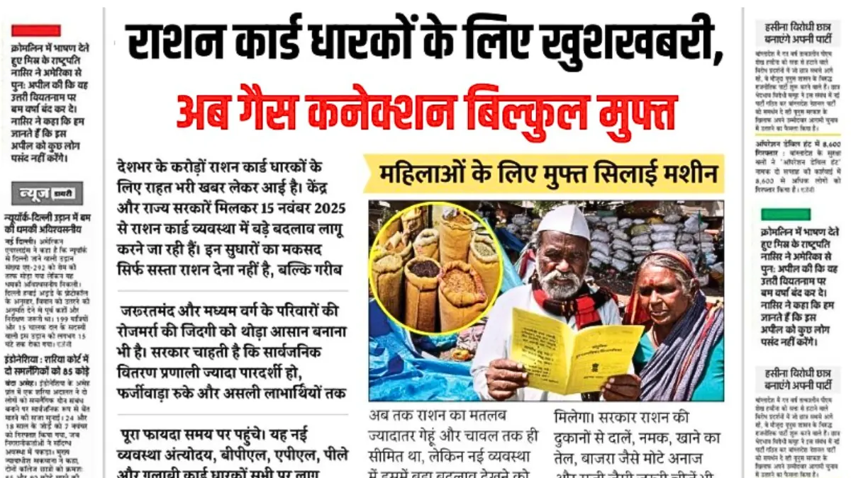 गरीब परिवारों की सुविधा बढ़ी! अब राशन कार्ड से फ्री LPG कनेक्शन पा सकते हैं : Ration Card Holder